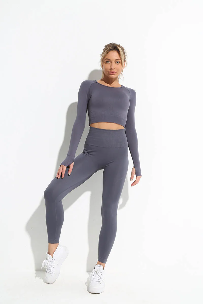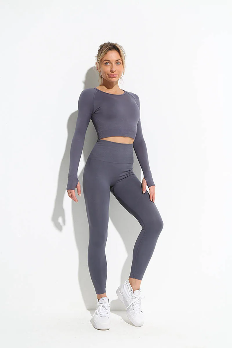 Женский комплект для йоги, с длинным рукавом и высокой талией
