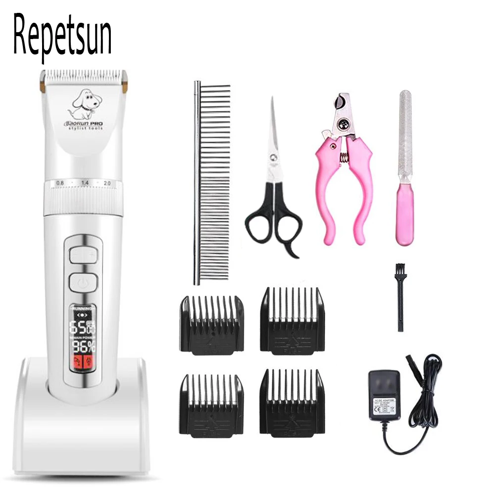 Машинка для стрижки домашних питомцев Baorun P9, Профессиональный электрический триммер с ЖК-дисплеем для кошек и собак, перезаряжаемая машинка для груминга животных