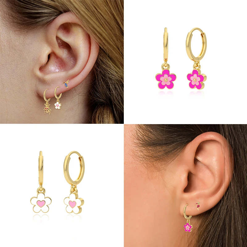 Pink Blue Flower earringssilver color jewwlry Gift
