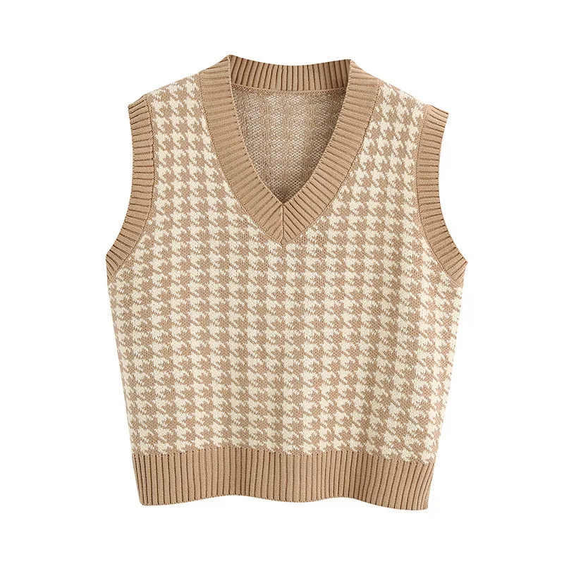 Женский вязаный жилет с рисунком гусиная лапка, свитер в клетку без рукавов с V-образным вырезом, винтажный свитер, Женский Повседневный Свободный жилет, шикарные топы