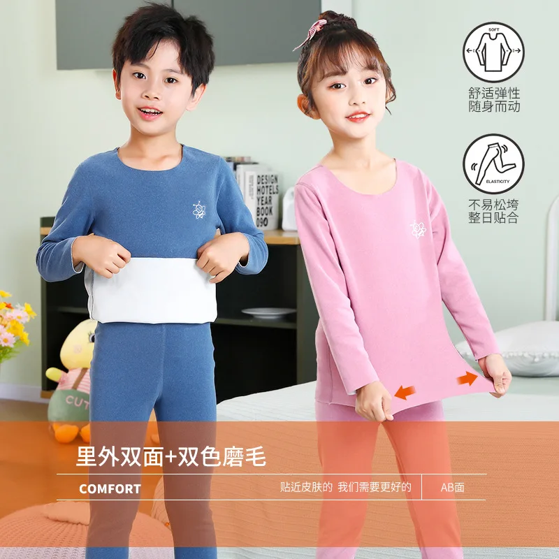 Детские комплекты нижнего белья, весенне-осенние пижамы для мальчиков и девочек, немецкое бархатное однотонное термобелье для малышей, брюки