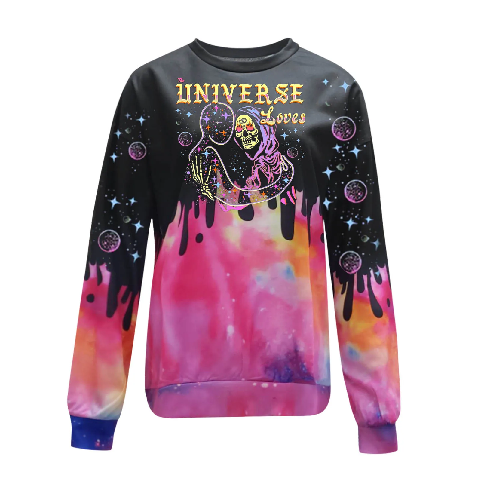 Женский Цветной свитшот с принтом в виде галстука-красителя, Свободный Топ с круглым вырезом на Хэллоуин
