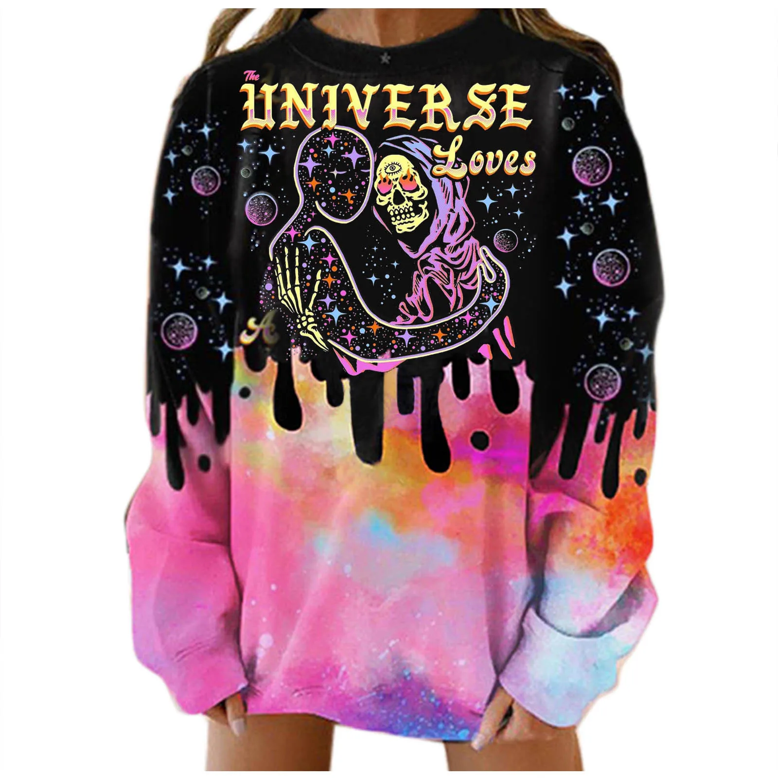 Женские толстовки с принтом влюбленных звезд, хлопковая толстовка с принтом, Женский свитшот, свободный женский топ в западном стиле с круглым вырезом для Хэллоуина