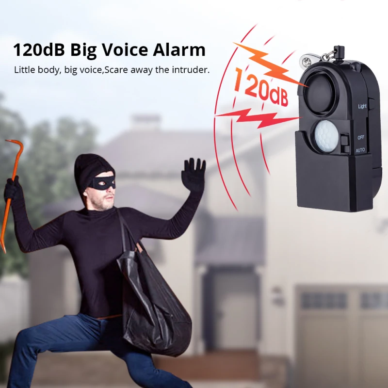 3 в 1 многофункциональная мини-Персональная Сигнализация: безопасная персональная сигнализация используется как светодиодный фонарик, аварийное оповещение и пассивный инфракрасный (PIR) детектор движения. Аварийные сигналы тревоги легко активируются просто потяните шнур сигнализации.
