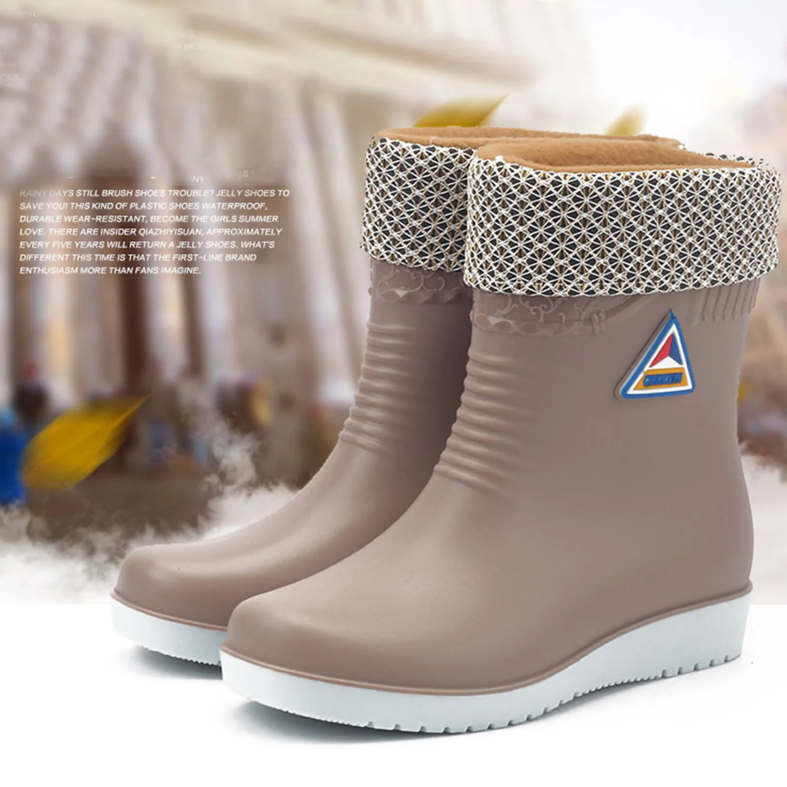 Женские резиновые сапоги, модная Нескользящая спортивная обувь на плоской подошве с круглым носком, водонепроницаемые галоши, женские зимние теплые сапоги #40