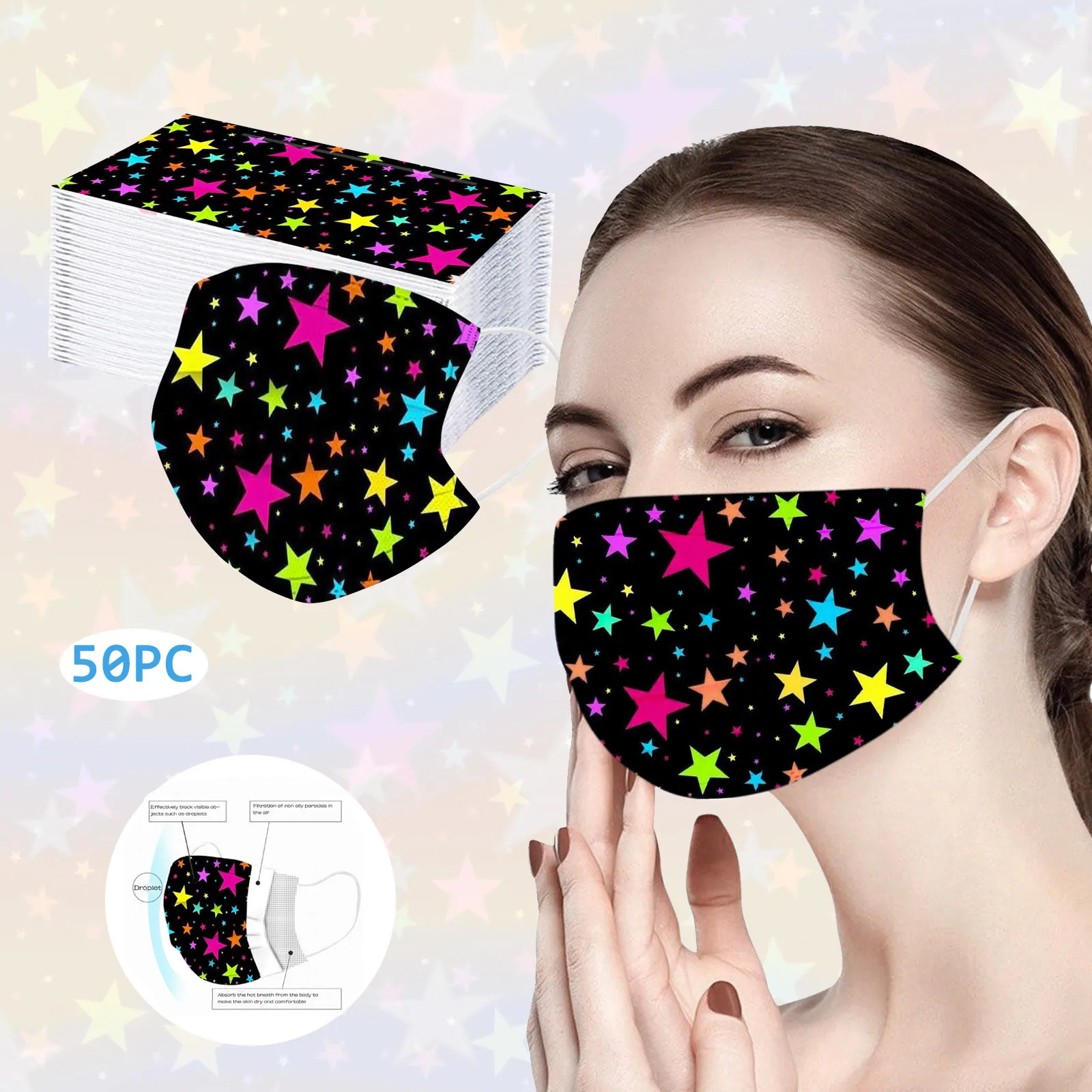 Трехслойная Пыленепроницаемая уличная маска для взрослых с черным градиентом и принтом звезд, черная маска для лица, маска для косплея на Хэллоуин