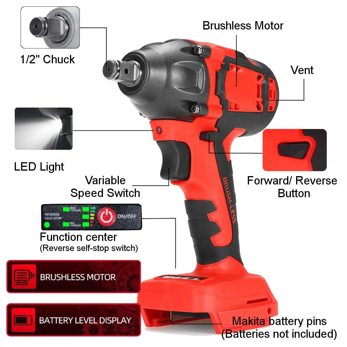 18В 520н. М. Беспроводной ударный ключ 1/2 дюйма сменный драйвер для аккумулятора Makita