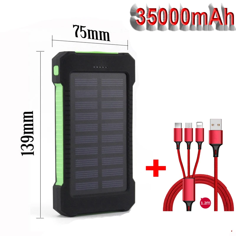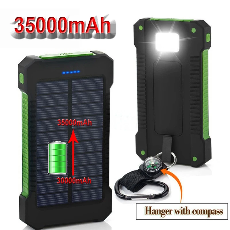 Внешний аккумулятор на солнечной батарее с 2-мя USB-портами, 35000 мАч