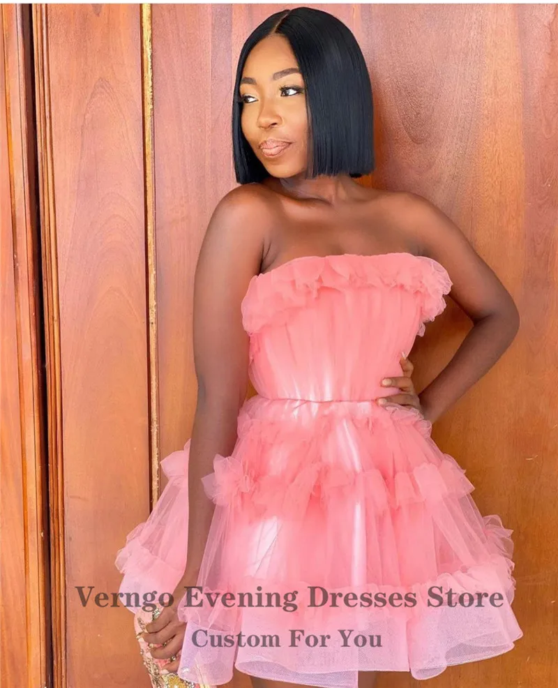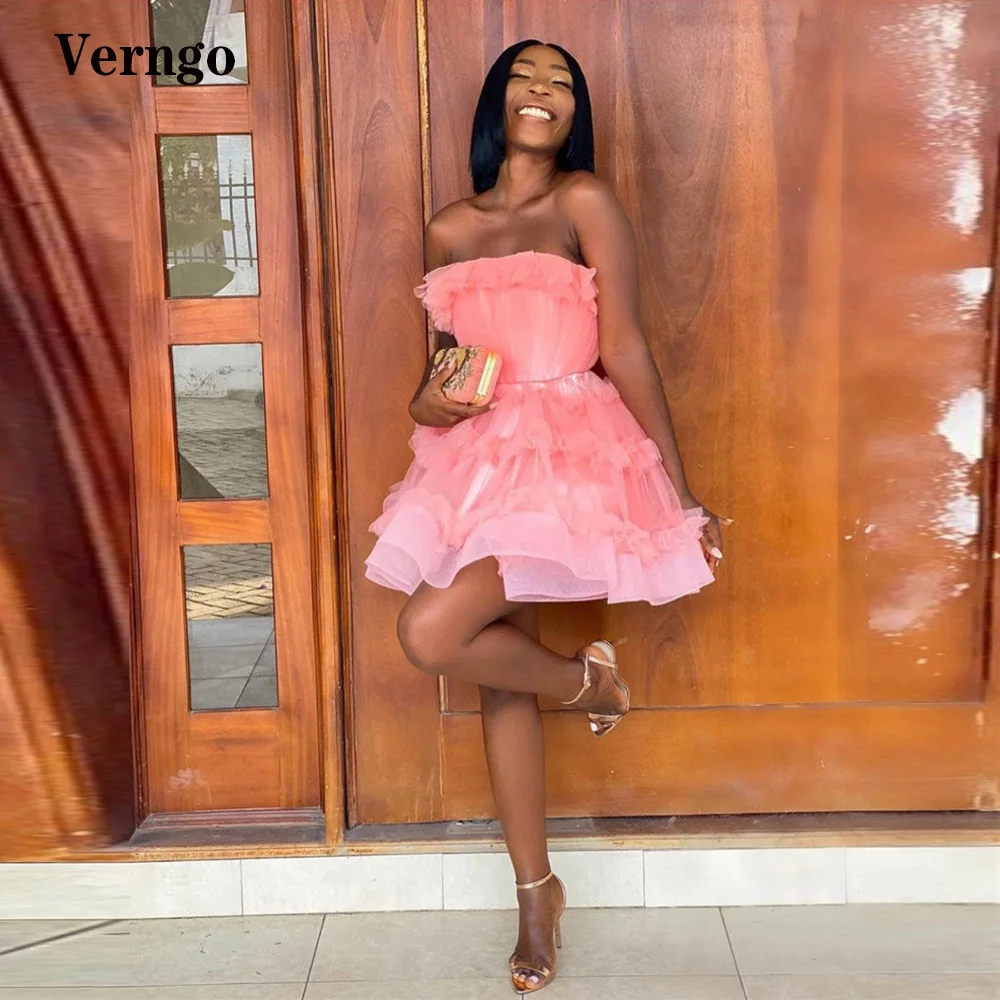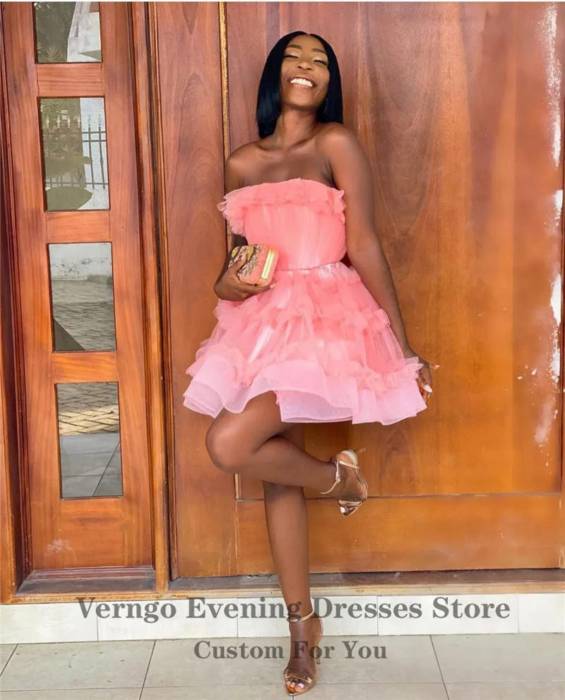 Женское коктейльное мини-платье, из органзы, без бретелек, с оборками