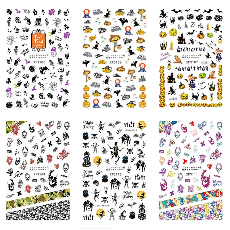 Наклейки для ногтевого дизайна на Хэллоуин, маникюрные самоклеящиес...