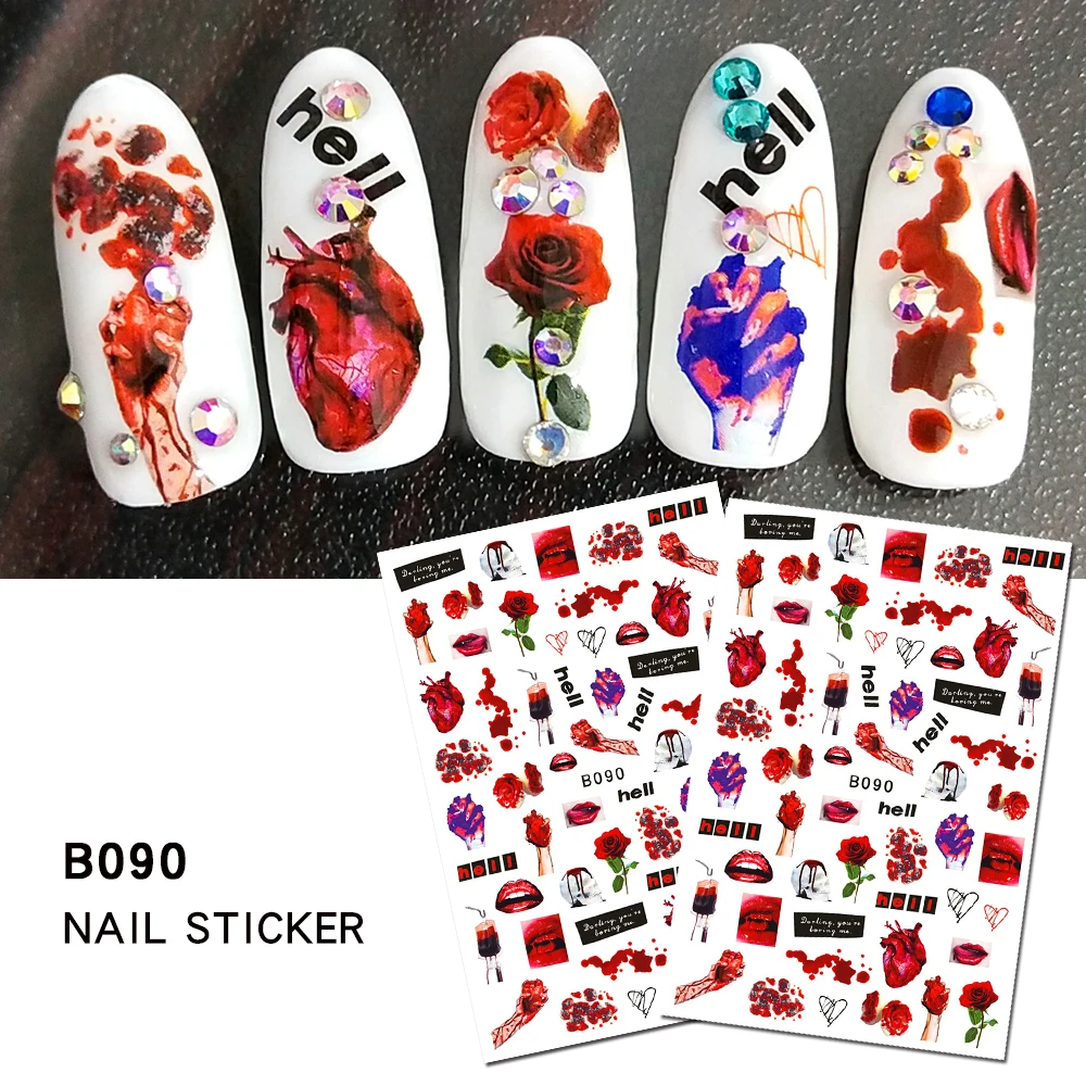 3D наклейки для ногтей на Хэллоуин вечерние клоун маникюр дизайн женские губы сердце наклейки для ногтей Декор Тыква