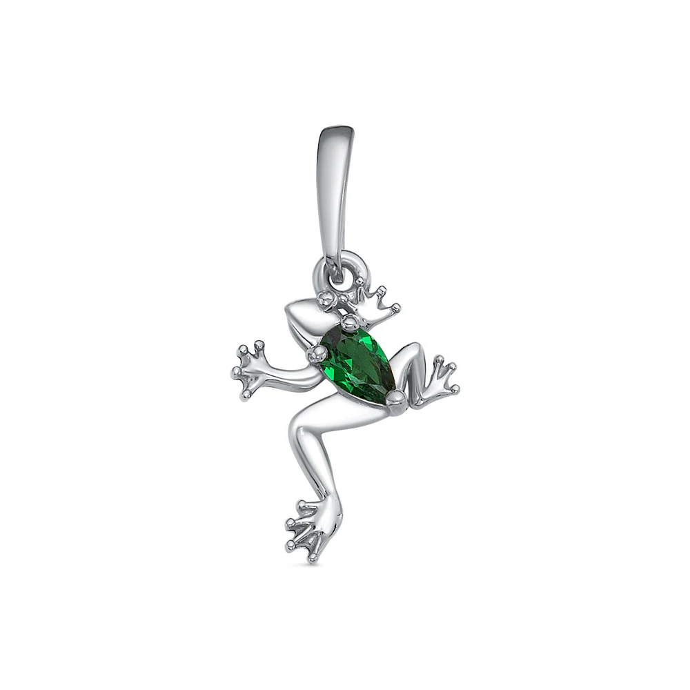 Подвеска Лягушка выполнена из серебра 925 пробы. Покрытие родирование/золочение.