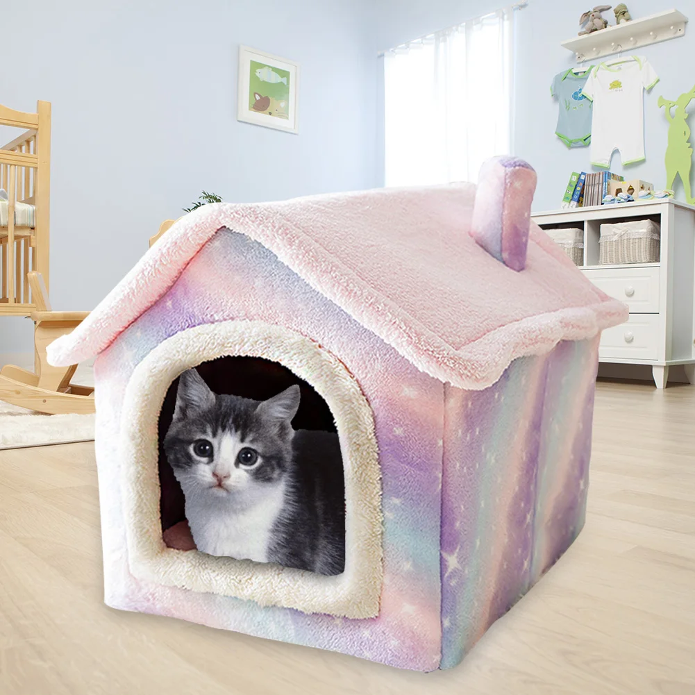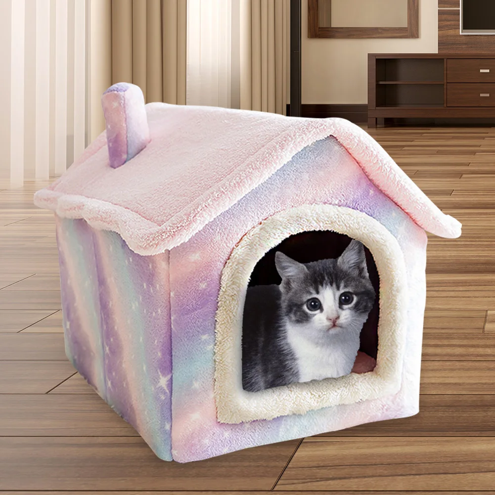 Плюшевая палатка для кошек, полузакрытая, розовая, со съемной корзиной, домик для питомца, Конура
