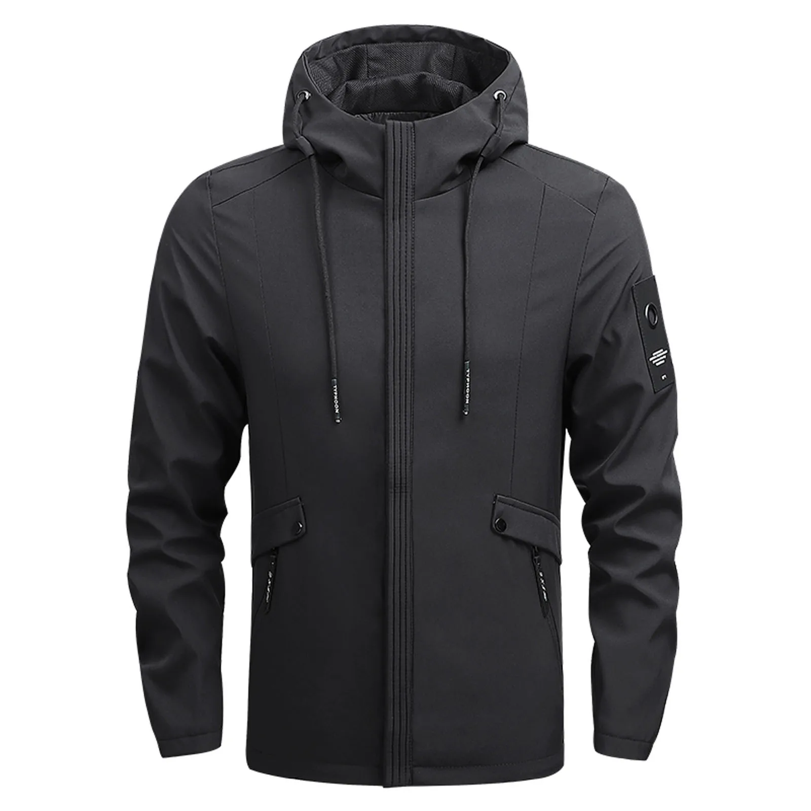 Куртка мужская на молнии, Осень-зима 2021, Новая повседневная однотонная куртка с капюшоном, модная мужская верхняя одежда, приталенные топы с карманами, высокое качество