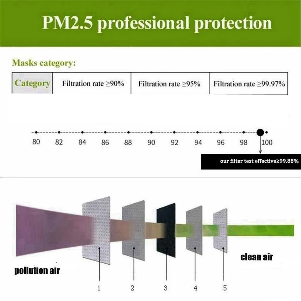 5 слоев маски с активированным углем фильтр PM2.5 анти-противотуман...