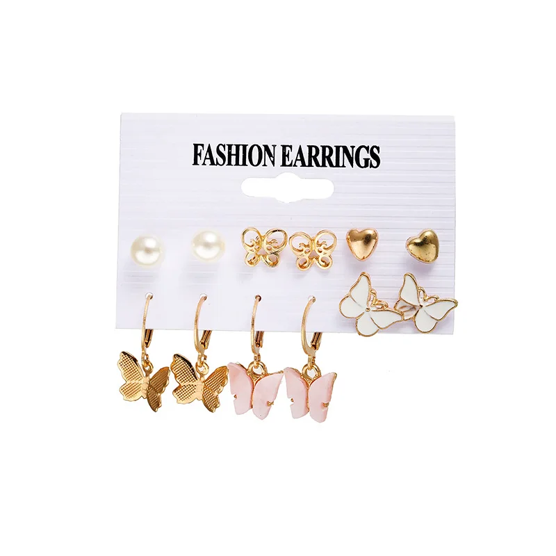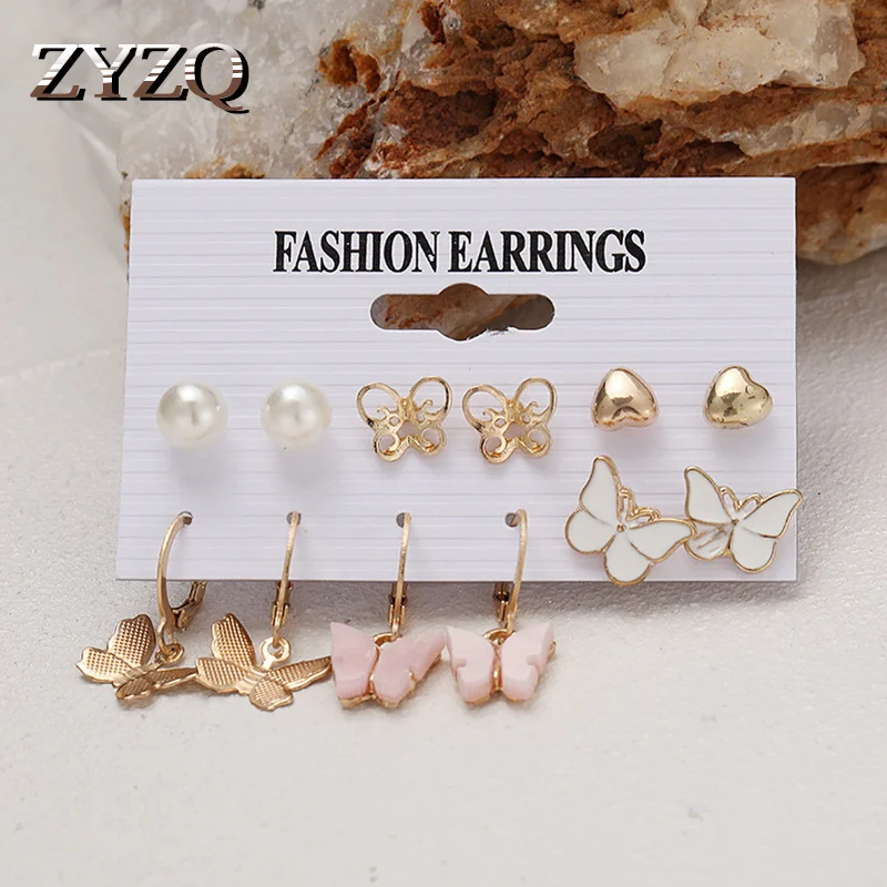 ZYZQ 6 шт. акриловые серьги-подвески в виде бабочки, искусственные геометрические круглые серьги с кристаллами в форме сердца, Повседневная бижутерия