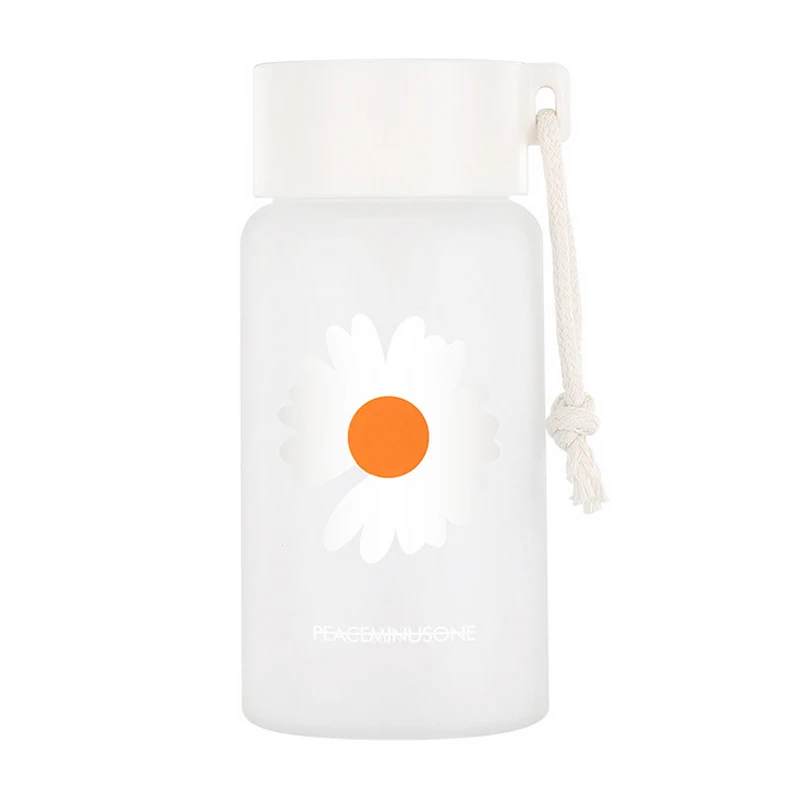 Маленькие пластиковые бутылки для воды с маргаритками, 500 мл, без БФА, креативная матовая прозрачная бутылка для воды с портативной веревкой, дорожная чайная чашка