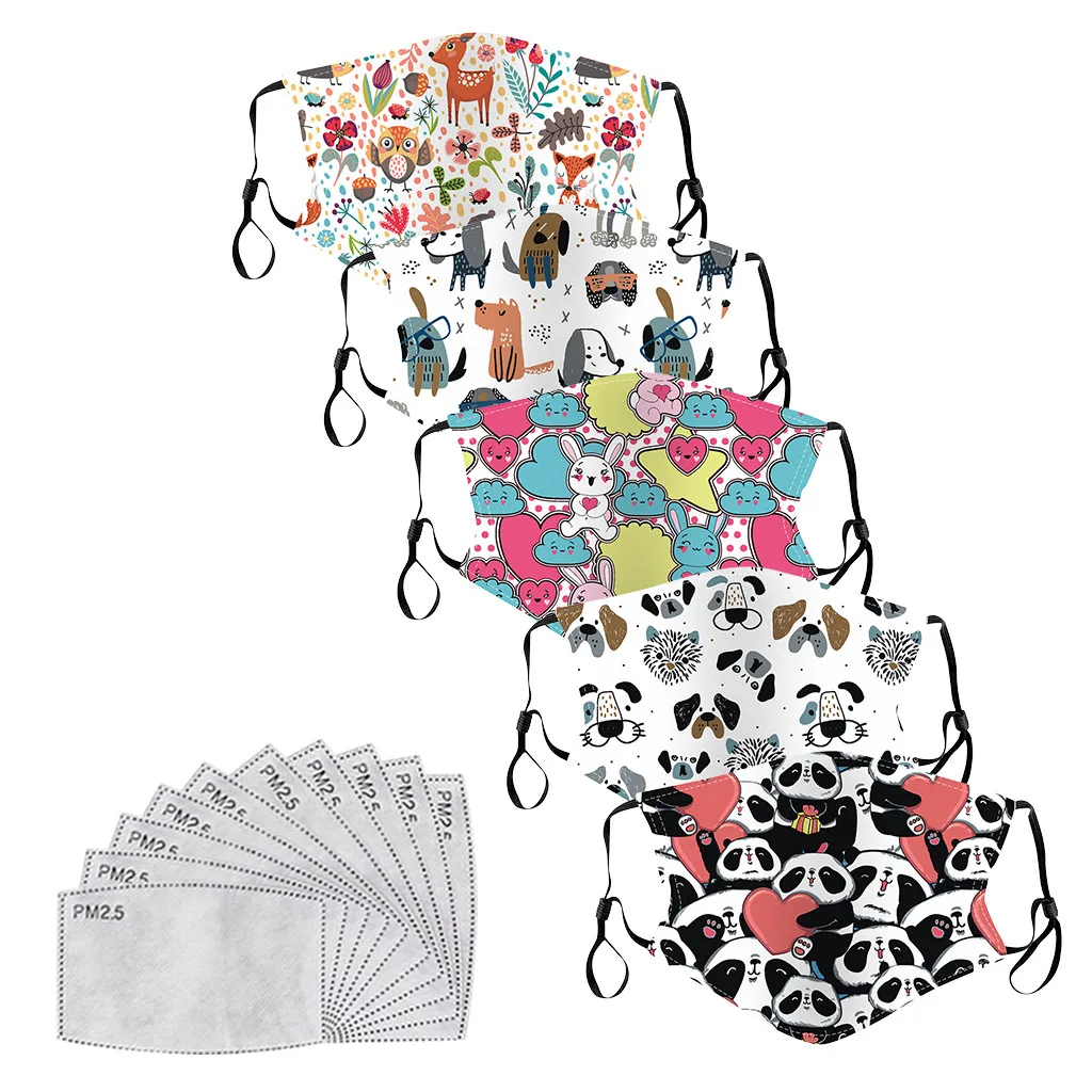 5 шт. Детские наружные хлопковые маски для рта Моющиеся Многоразовые маски для лица фильтр