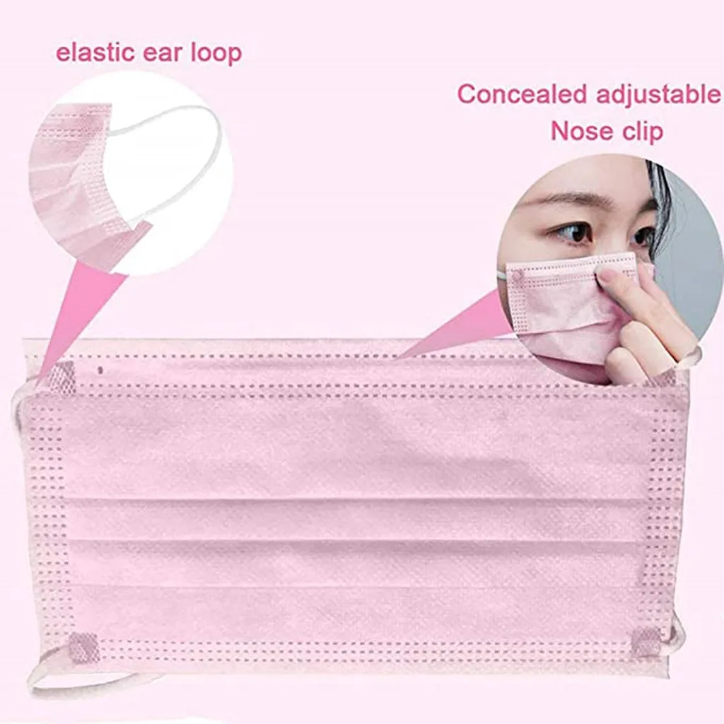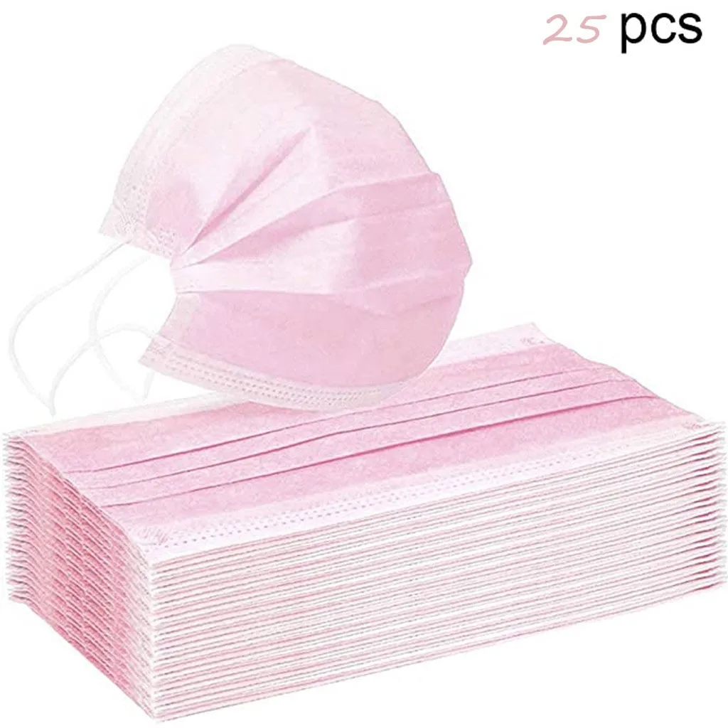25 шт. одноразовые маски для лица, розовые противопыльные Многослойные одноразовые маски для лица, нетканые одноразовые маски для лица