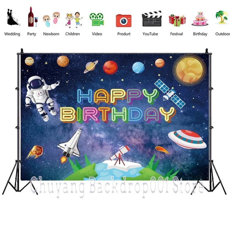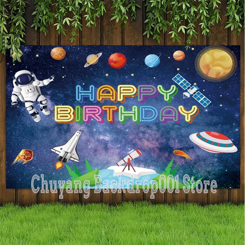 Фон для фотосъемки с изображением космоса космонавты и ракеты Детский праздник дня рождения планет