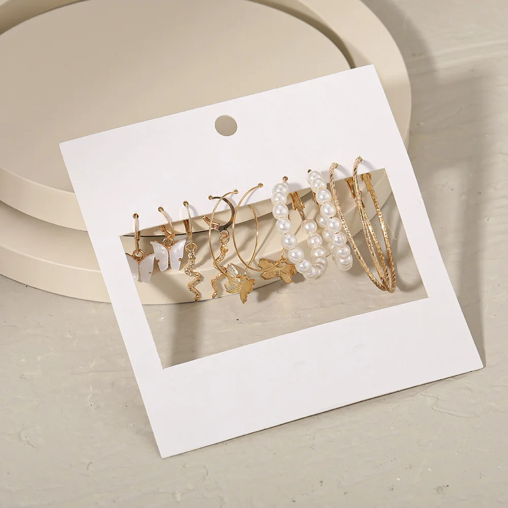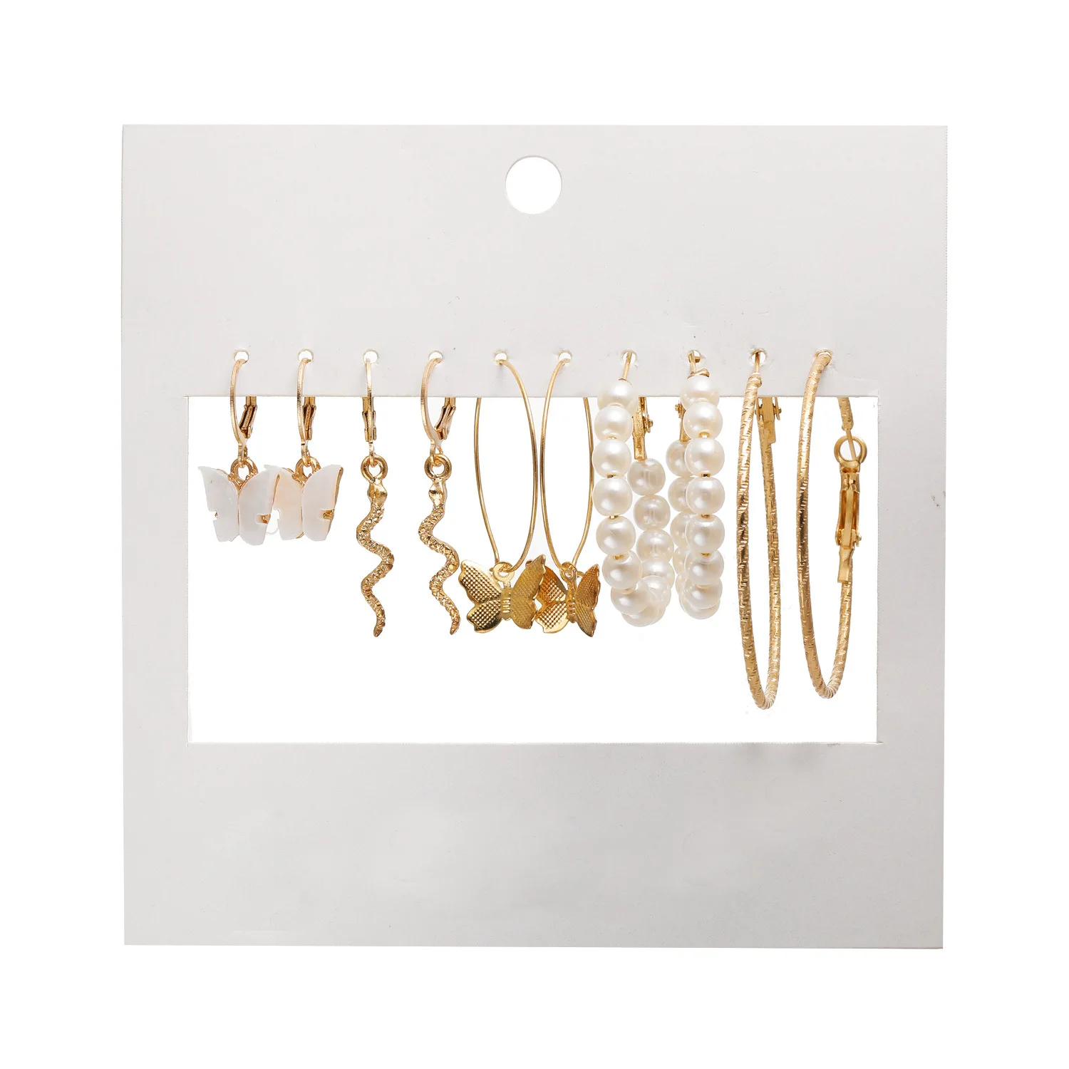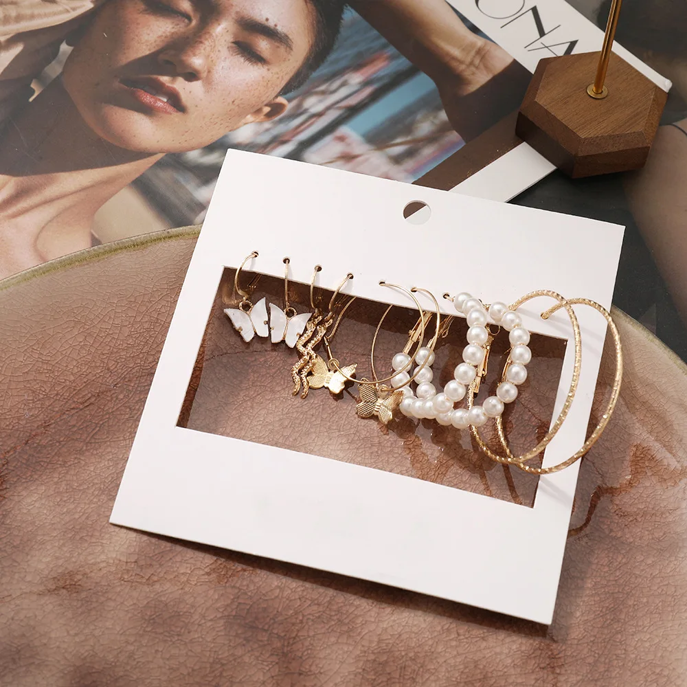 Комплект из жемчужных бусин, 5 пар металлических ювелирных изделий,...