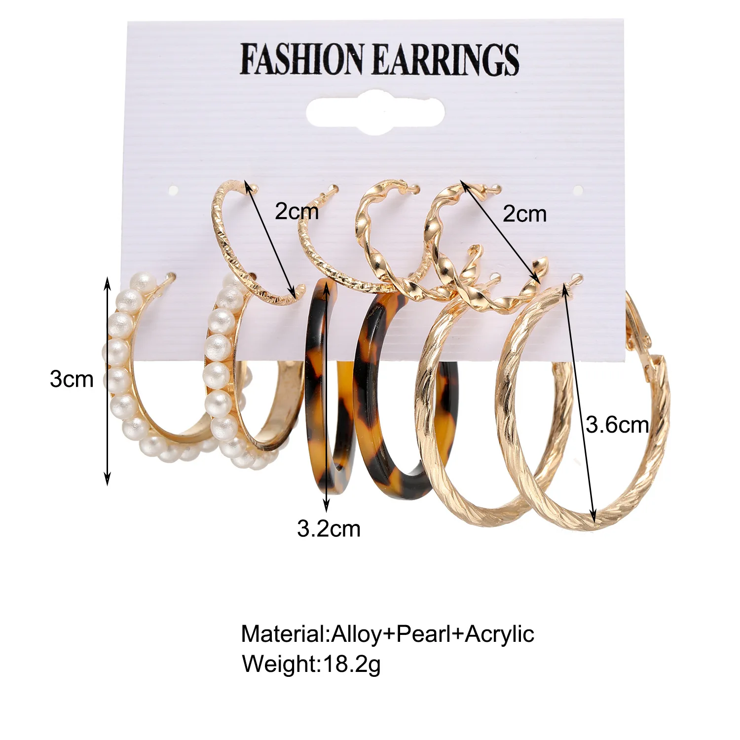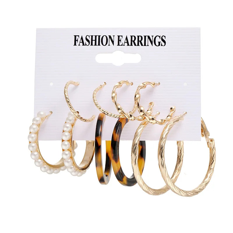 Набор серег 5 пар, простые серьги из акрилового сплава с металличес...
