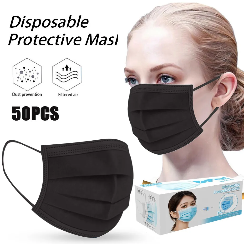 50 шт. черный 3 Слои Одноразовые Уход за кожей лица-маска, способны...