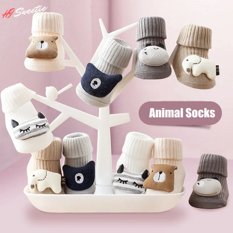 Осенне-зимние мягкие хлопковые носки для маленьких девочек, носки для новорожденных с рисунками животных, детские носки для мальчиков, нескользящие носки для пола на весну