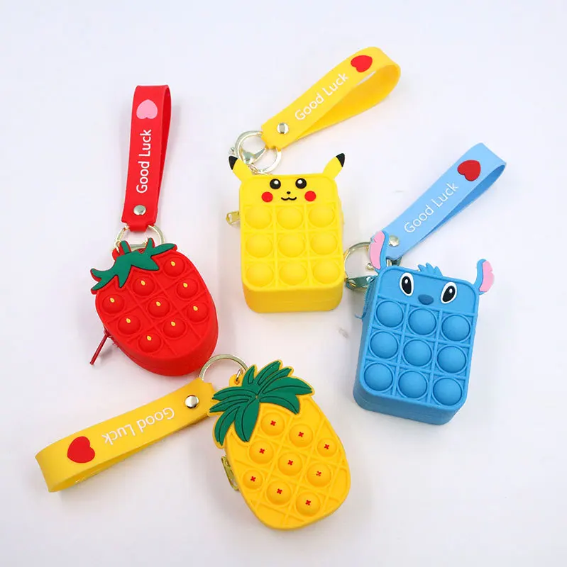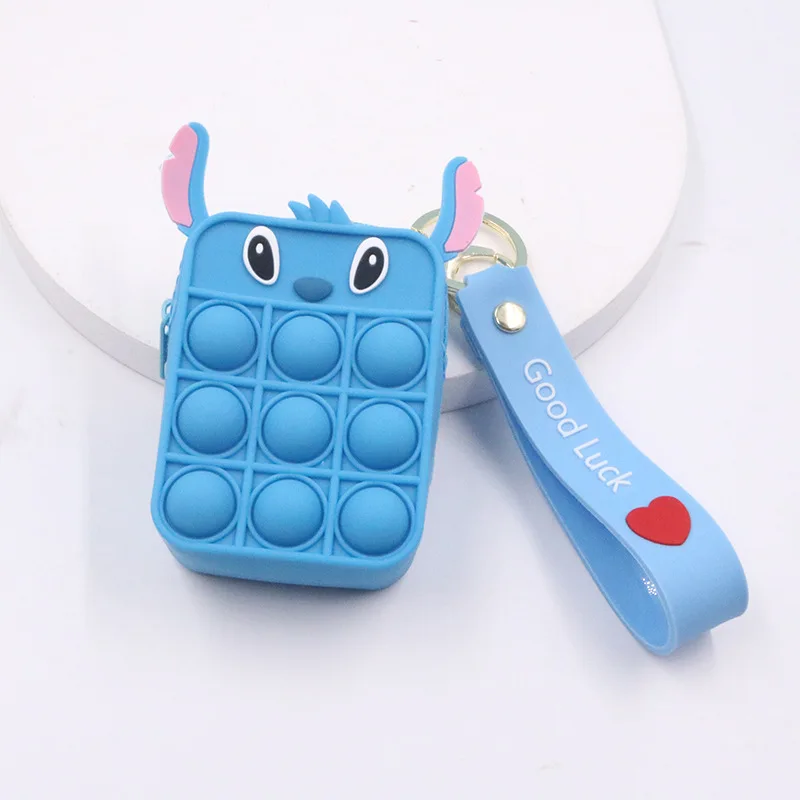Игрушки покемон Пикачу Ститч фиджет силиконовый пузырьковый кошелек простой пуш пузырьки антистресс Мини Брелок-Кошелек для монет игрушка