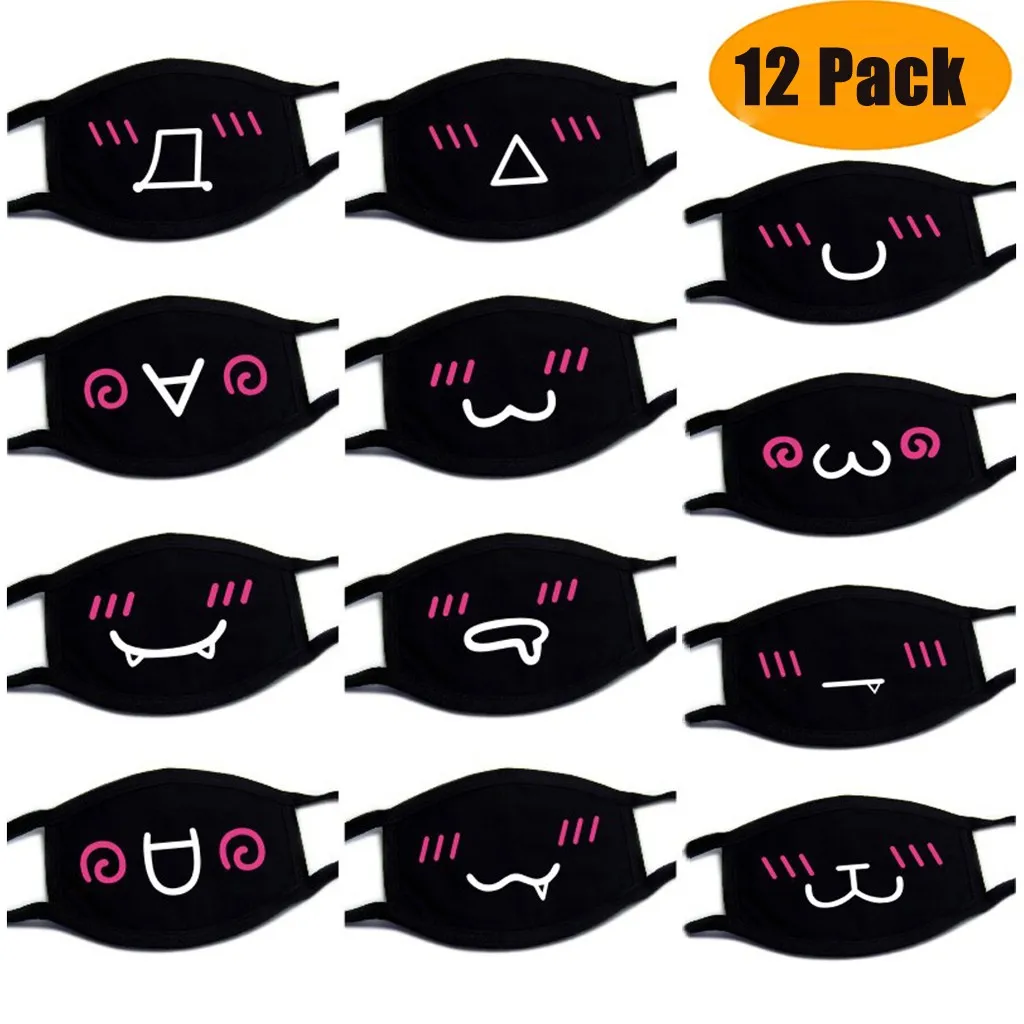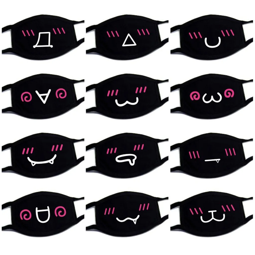 Маска для лица унисекс Kpop Kawaii, черная многоразовая Милая аниме маска для лица против пыли, корейское аниме, горячая распродажа