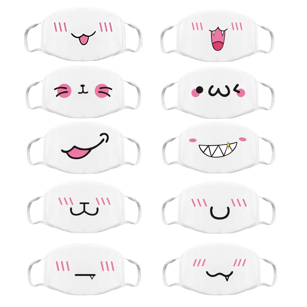 Унисекс маски для повторного использования рот белая Милая аниме Анти Пыль Kawaii маффли маска для лица