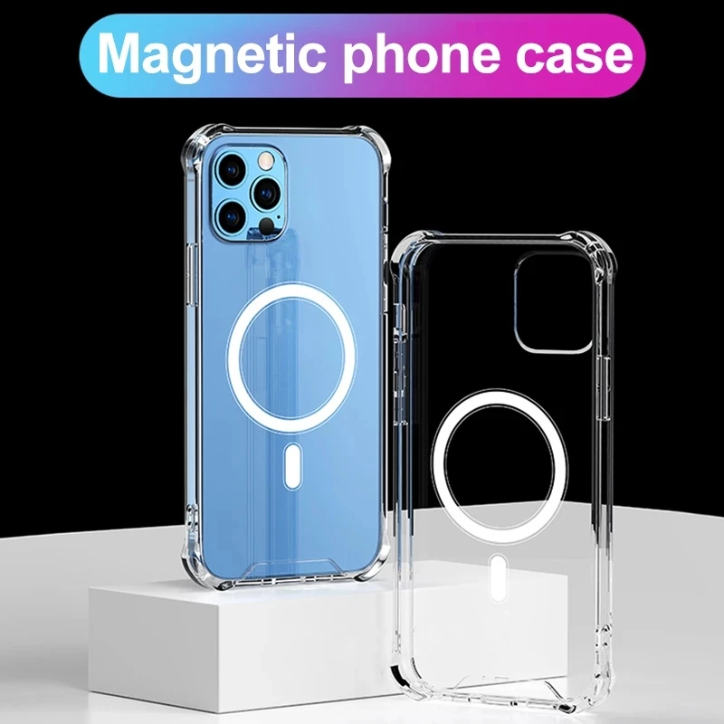 Прозрачный Магнитный безопасный зарядный чехол для iPhone 12 Pro Max, чехол для iPhone 11 13 Pro Max Mini XS XR X, прозрачный защитный чехол