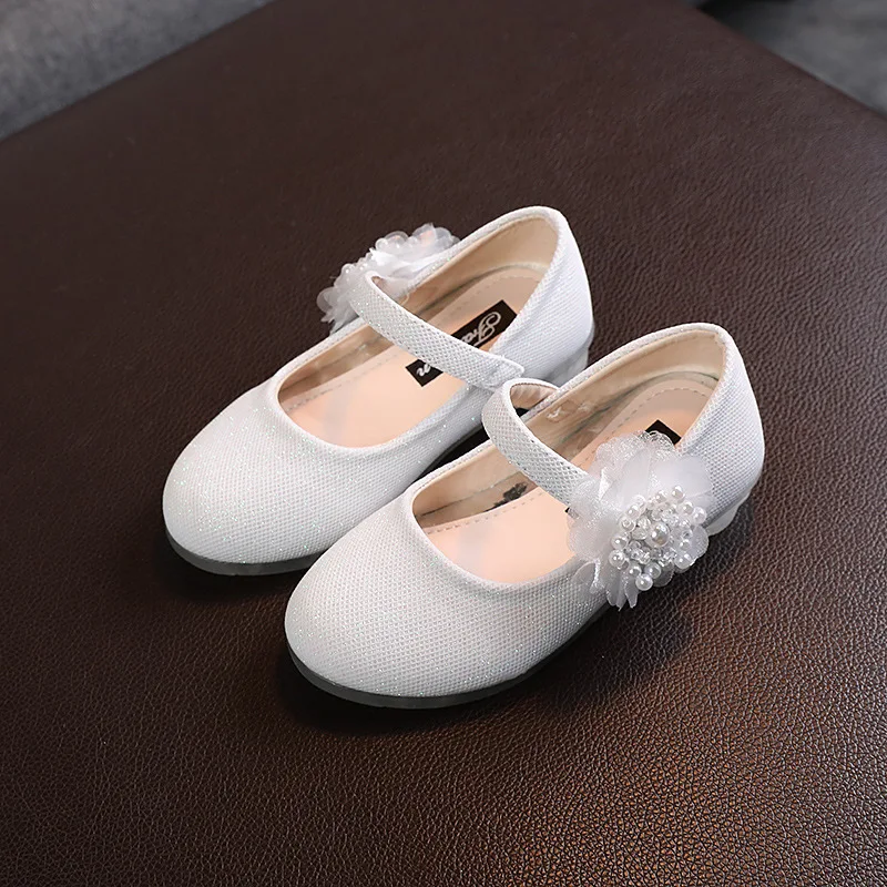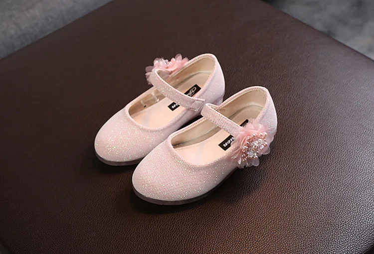 Туфли принцессы с жемчугом для маленьких девочек, туфли с бантом и блестками для вечерние, детская обувь стразы, Детская Милая обувь G260