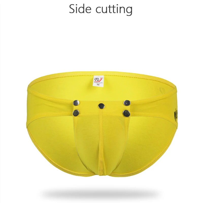 Бесшовное нижнее белье для мужчин, пикантные модные Трусы-стринги с заниженной талией, хлопковые треугольные штаны со съемными пуговицами