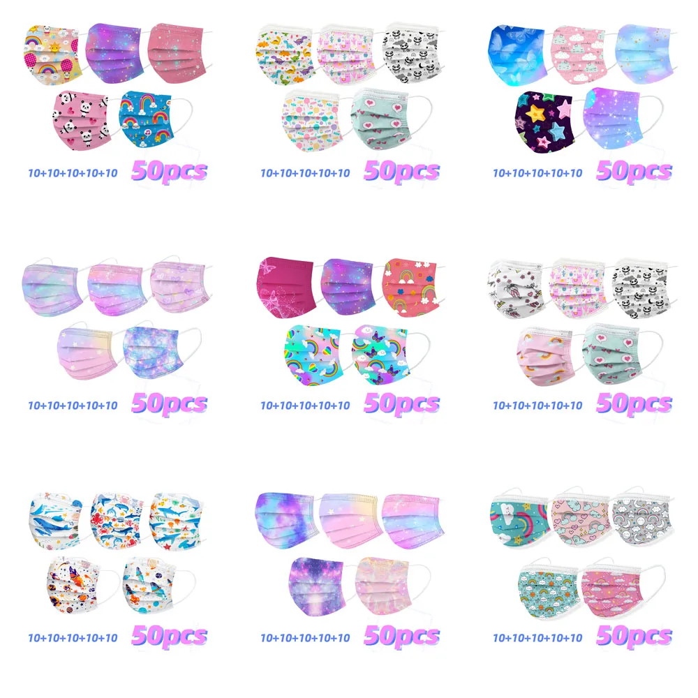 50 шт., детская одноразовая маска с рисунком радуги