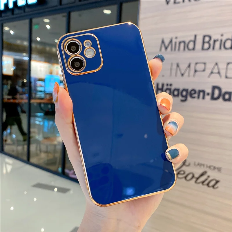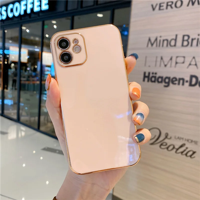 Роскошный 6D Мягкий силиконовый чехол с квадратной рамкой для iPhone 11 12 Pro Max Mini iPhone XR X XS 7 8 Plus SE 2020 защитная задняя крышка для камеры