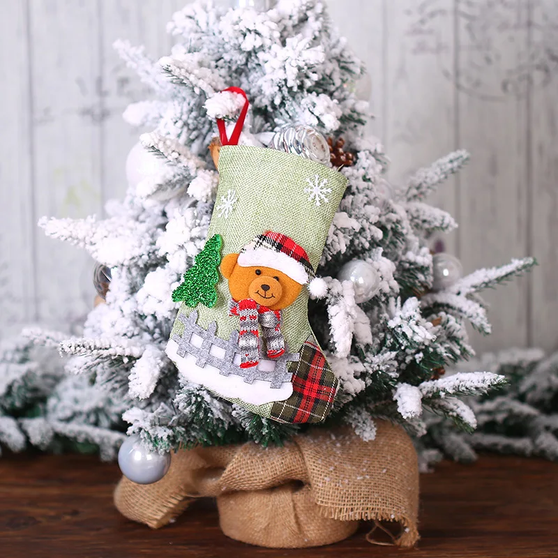 Подвеска в виде носков Санты, клетчатая ткань, куклы, льняные чулки...