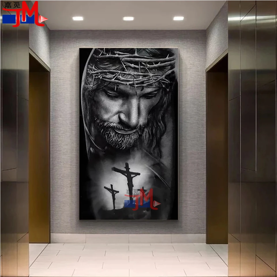 Алмазная 5D картина с короной шипов и Иисусом, домашний декор, настенная квадратная круглая мозаичная картина из бисера