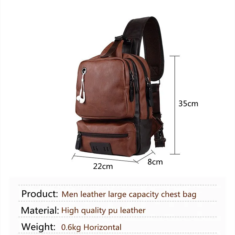 Большая винтажная нагрудная сумка из искусственной кожи для мужчин, модная уличная спортивная сумка через плечо с большой вместимостью, 2021