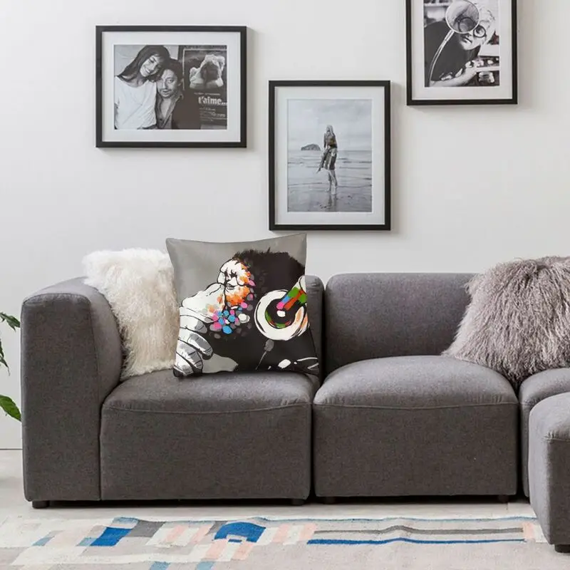 Наволочка для подушки с наушниками Бэнкси диджея обезьяны, диджея, уличная поп-арт, напольная Подушка, чехол для гостиной, декоративная наволочка