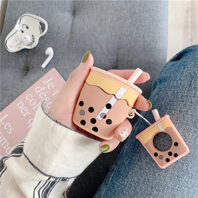 Чехол для AirPods 2, милый мультяшный Забавный чехол для наушников с молочным чаем и напитками, мягкий силиконовый чехол для Airpods 1, чехол с ремешком на палец