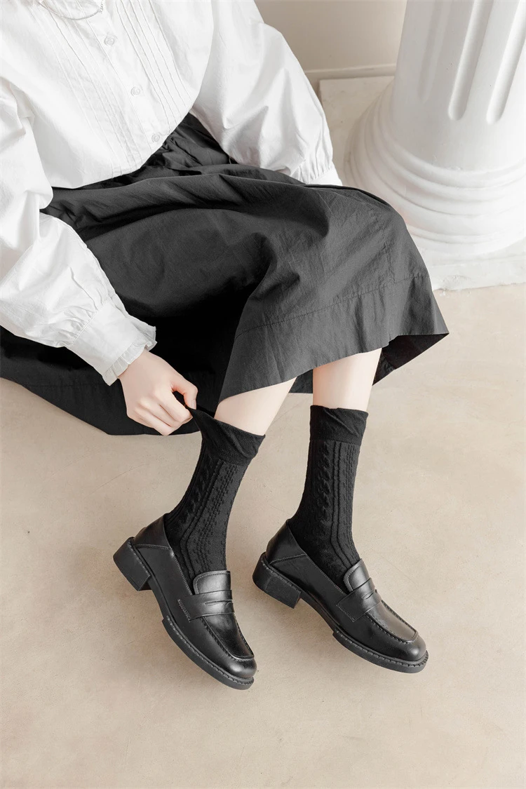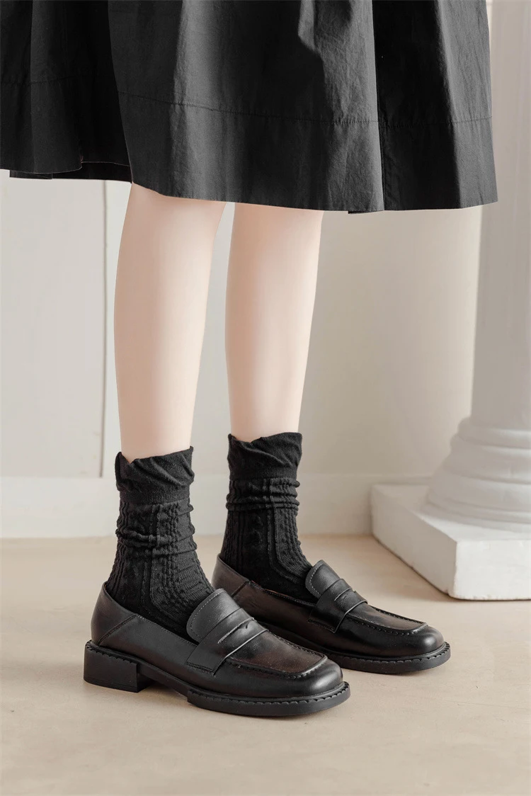 Женские хлопковые носки, с оборками, в стиле преппи, кавайные носки