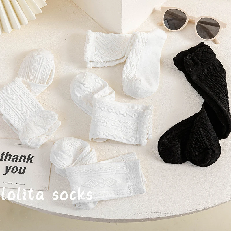 Носки lolita frilly, белые полосатые милые женские носки в японском стиле, модные хлопковые носки в стиле Харадзюку