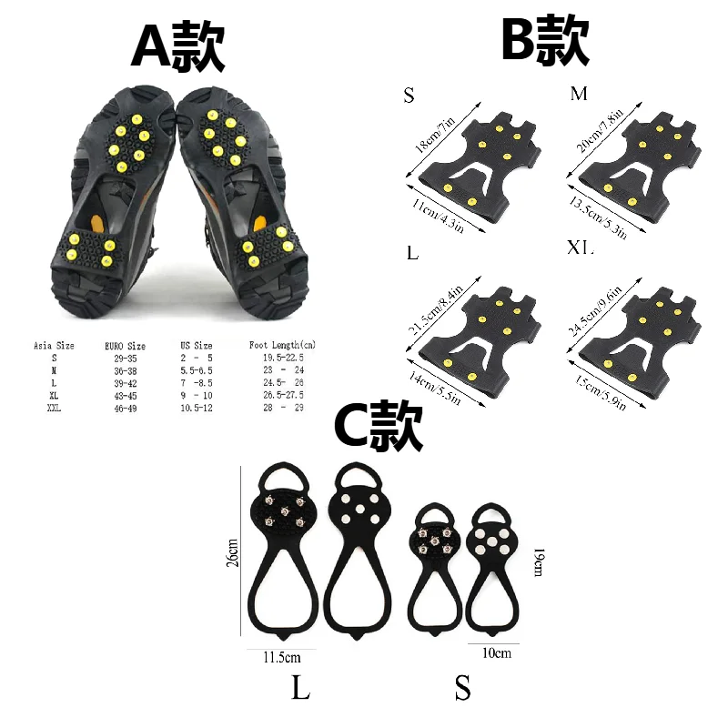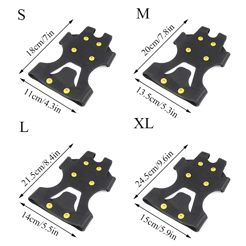 Описание:100% новый и высокое качество.6 чехлов для обуви с шипами для альпинизма, хорошая стойкость к истиранию, большая эластичность. Подходит для альпинизма на открытом воздухе, также подходит для использования в городе во время льда и снежной погоды. Подходит для пожилых людей и детей, чтобы выйти на лед и снег. Удобно надевать и снимать, легко носить с собой и светильник.Материал: TPRЦвет: черныйРазмер: S18 * 11 смM20 * 13,5 смL21.5 * 14 смXL24.5 * 15 см(1 дюйм = 25,4 мм или 1 мм = 0,0393 дюйма)Посылка включает в себя:1 пара чехлов для альпинизмаПримечание:1. Допускается погрешность в 2-3% из-за ручного измерения.Перед размещением заказа, пожалуйста, внимательно ознакомитесь со всеми условиями.2. Цвета могут отличаться, так как на дисплее разница, пожалуйста, поймите.