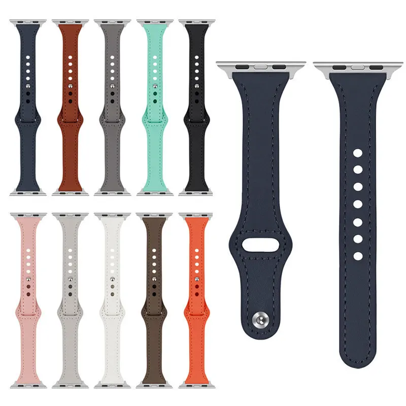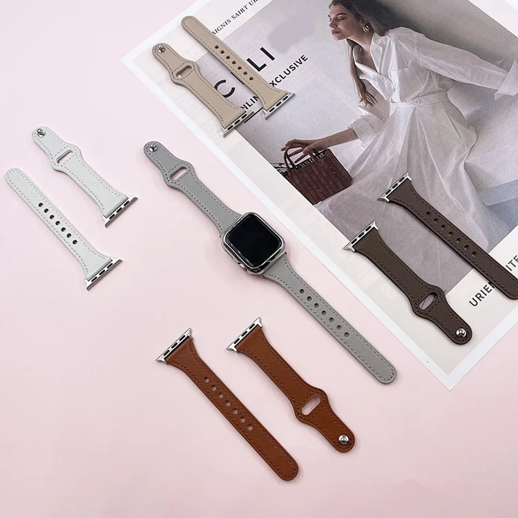 Ремешок кожаный женский для Apple Watch 7 6 SE, тонкий браслет для ...