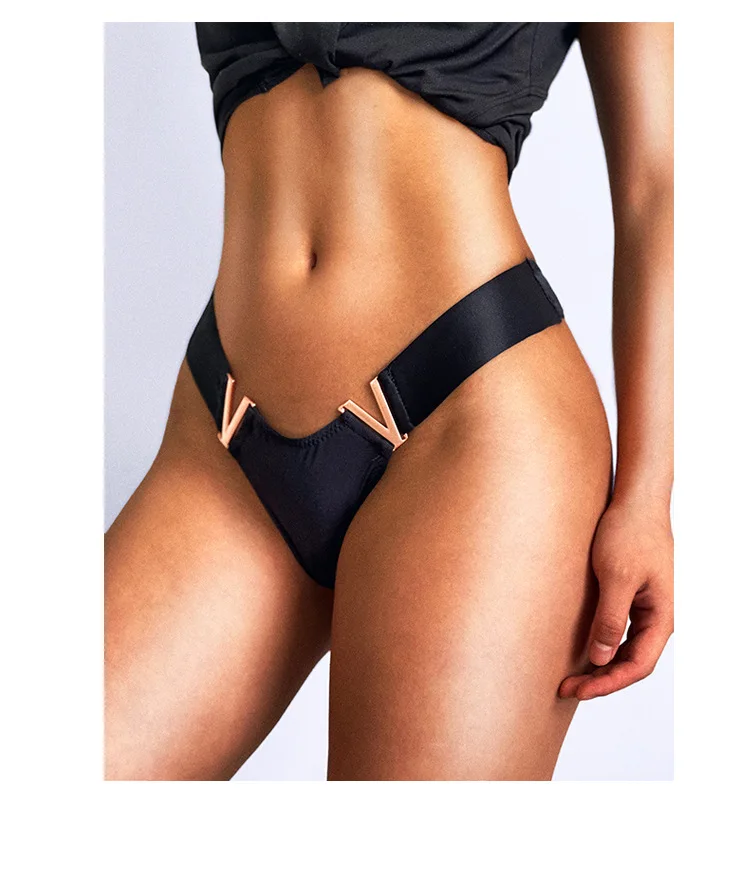 Модное сексуальное V-образное нижнее белье с металлическими украшениями, спортивные Трусики с высокой талией и высокой вилкой, полуоблегающие трусики, женские сексуальные трусики