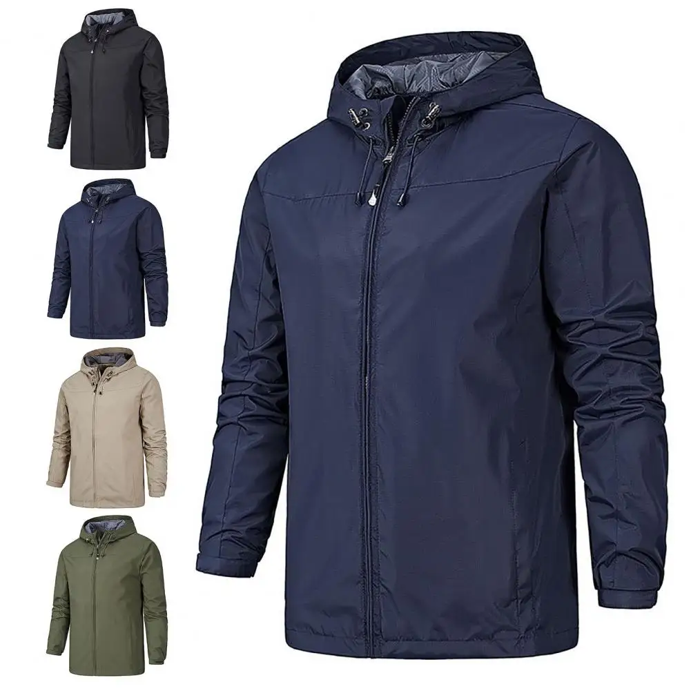 Ветрозащитная Мужская куртка с капюшоном, однотонная куртка на молн...