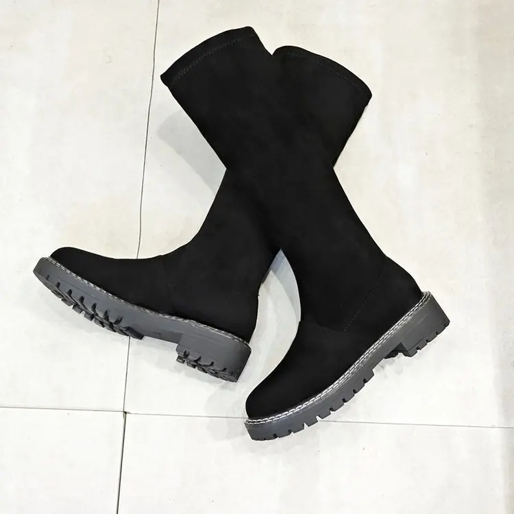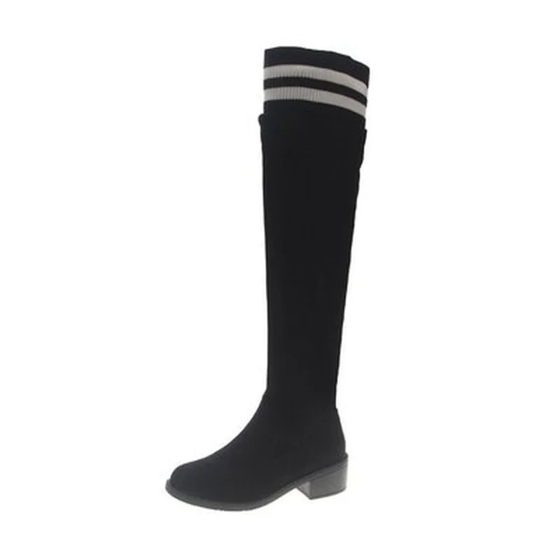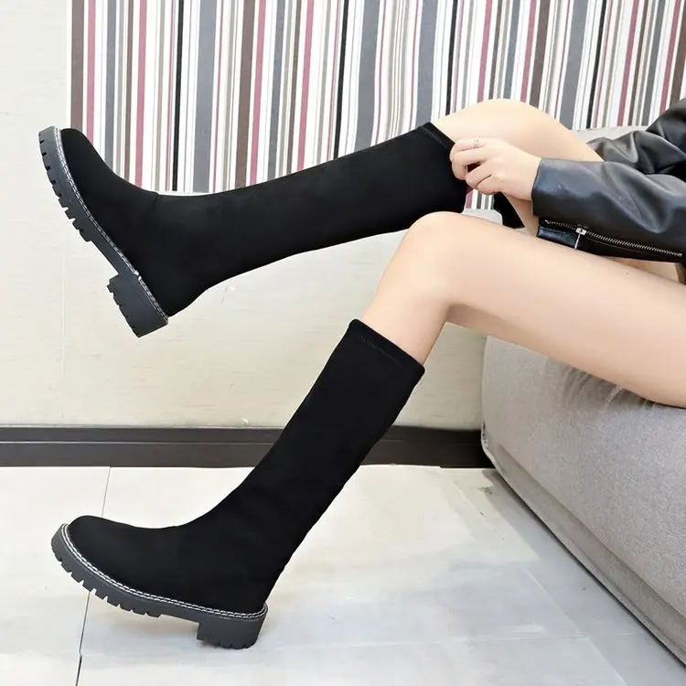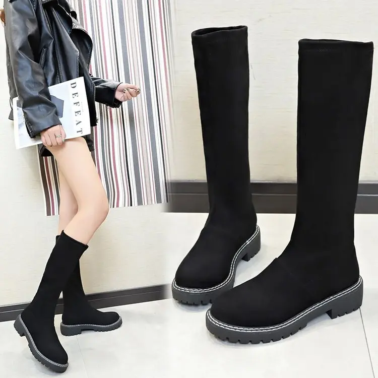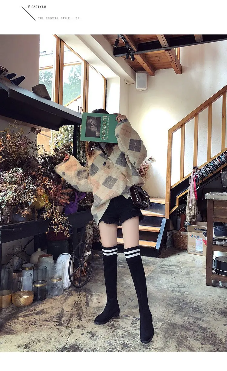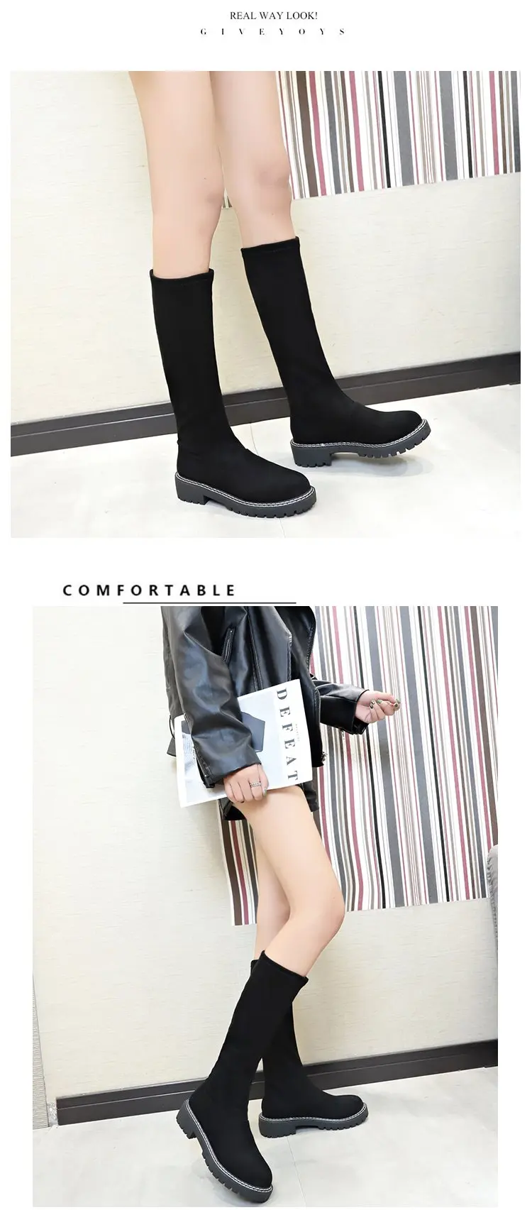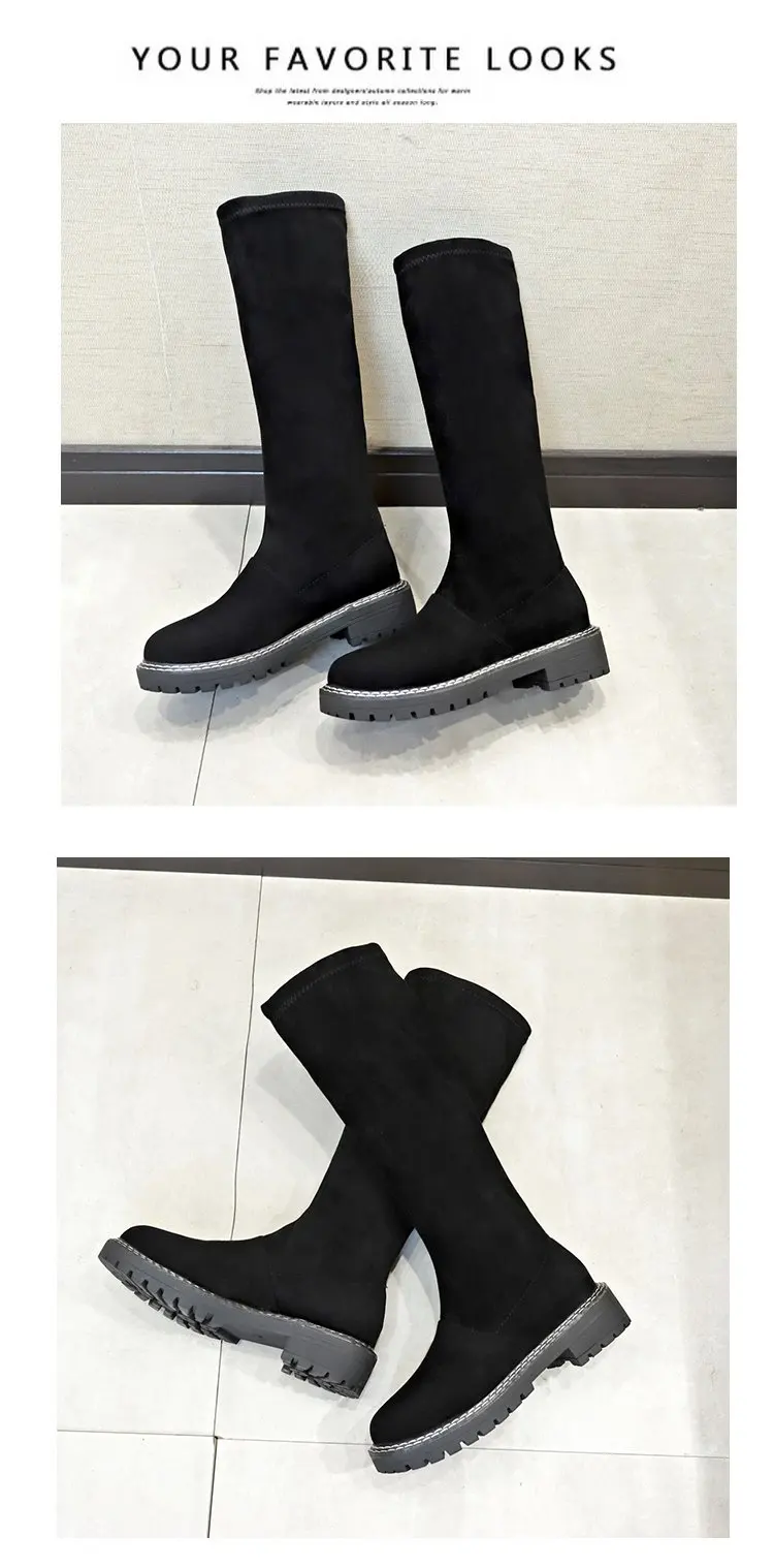 Облегающие сапоги на плоской подошве, плюшевые модные вязаные сапоги выше колена, женские зимние плюшевые сапоги в полоску