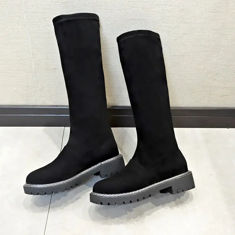 Женские ботфорты из искусственной кожи, тонкие эластичные сапоги вы...