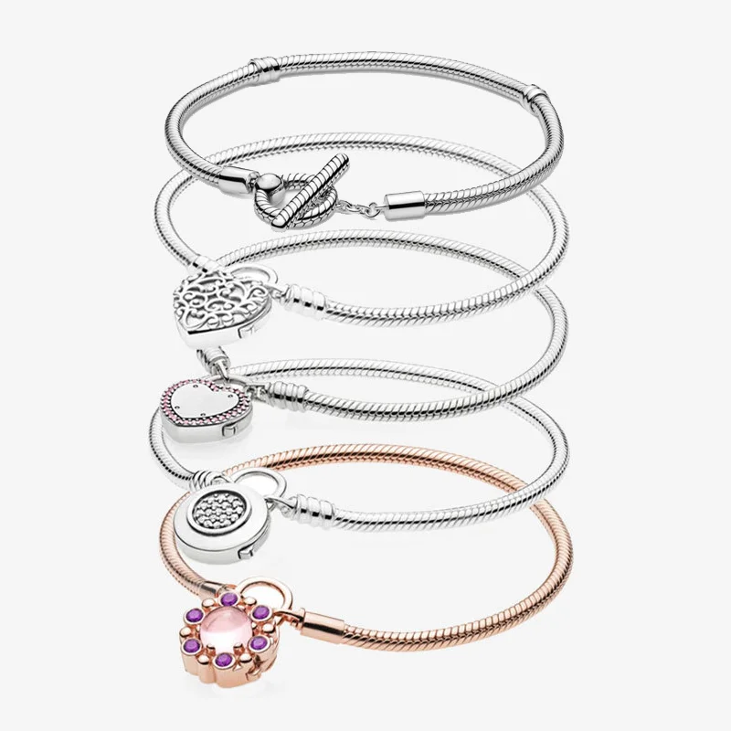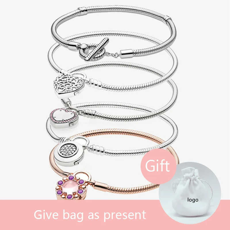 LR Безопасные Подвески в виде висячего замка, браслеты в панорамном стиле из стерлингового серебра 925 пробы для женщин и девушек, бусины-цепочки, тренд 2021